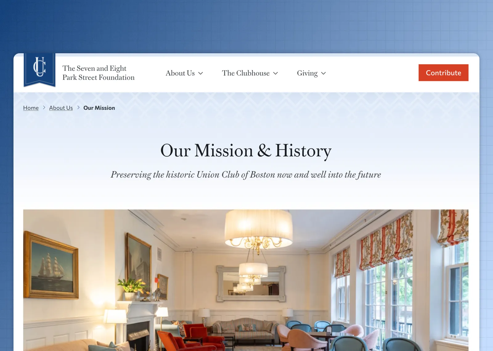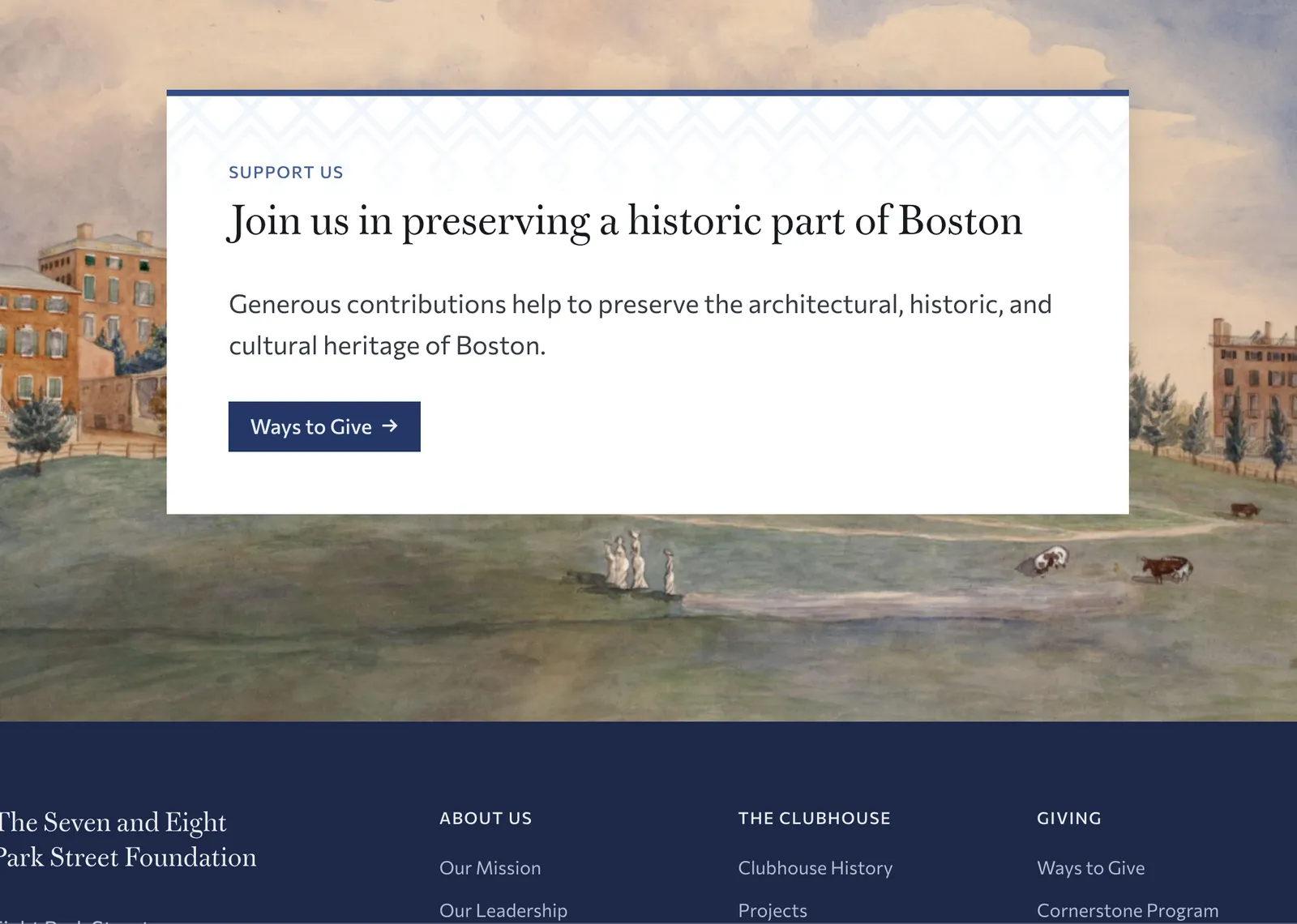 The Seven and Eight Park Street Foundation is the preservation and fundraising arm of the historic building housing the Union Club of Boston. The Foundation approached me for a long-overdue rehabilitation of a website that was more than a decade old.