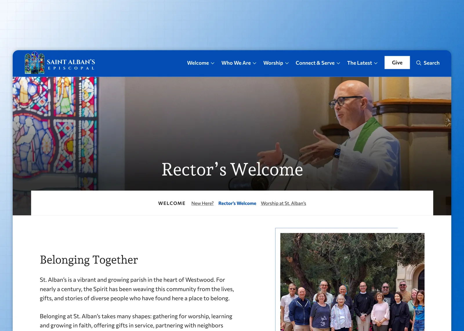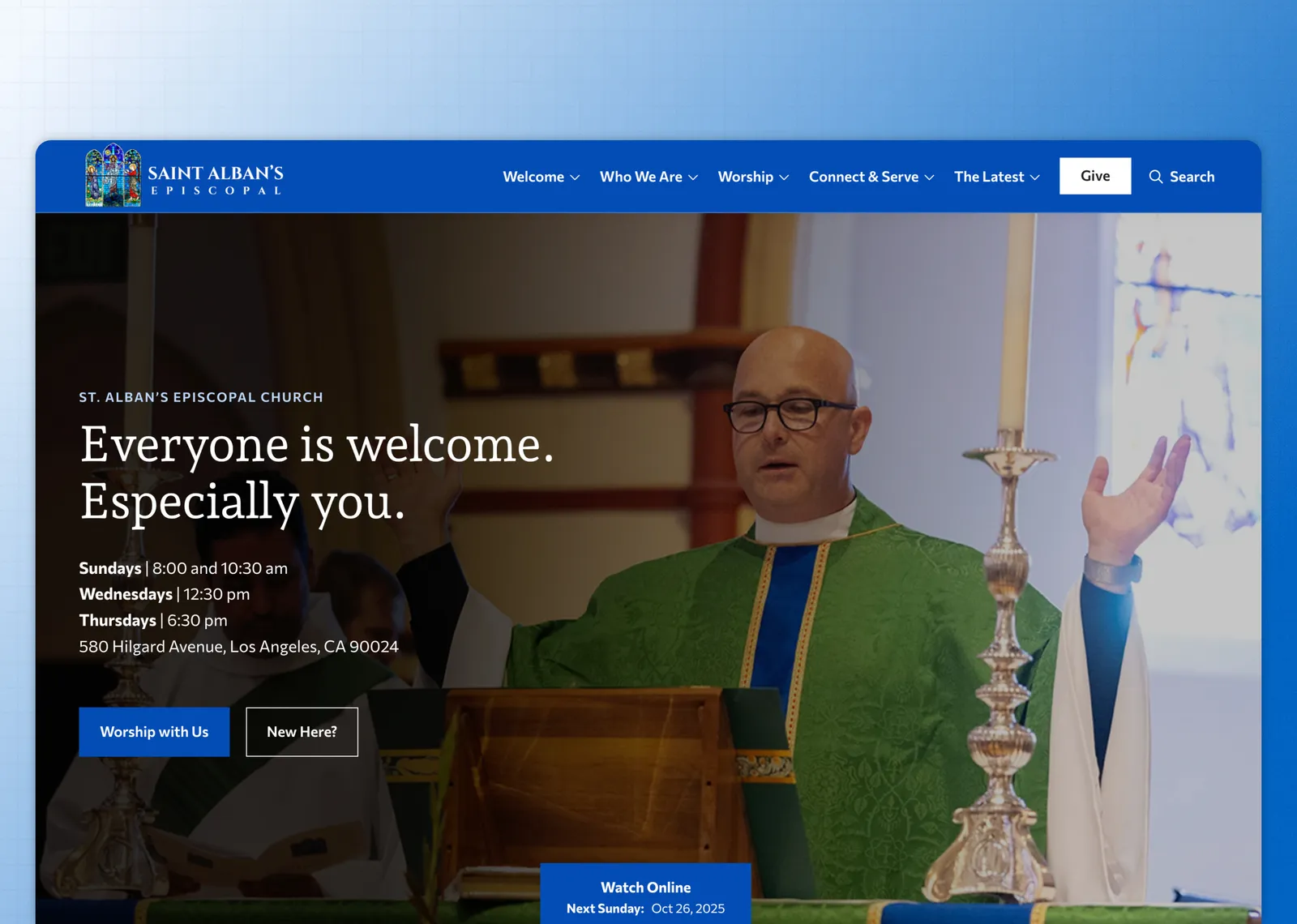 The core mission of St. Alban’s revolves around ideas of “welcome” and “belonging,” directed especially to the nearby student population. One of the main goals for the website was thus to mirror this language in form and aesthetics, making content easy to navigate, accessible to all users, and approachable.